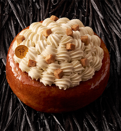 Pâte briochée imbibée au sirop Infiniment Vanille et au vieux rhum brun agricole, crème de mascarpone à la vanille, sablés diamant aux vanilles de Tahiti, du Mexique et de Madagascar