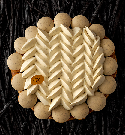 Pâte sablée, biscuit imbibé à la vanille, ganache et mascarpone à la vanille de Tahiti, du Mexique et de Madagascar