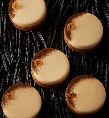 Sablé Infiniment Vanille, biscuit imbibé à la vanille, ganache et crème mascarpone à la vanille de Tahiti, du Mexique et de Madagascar