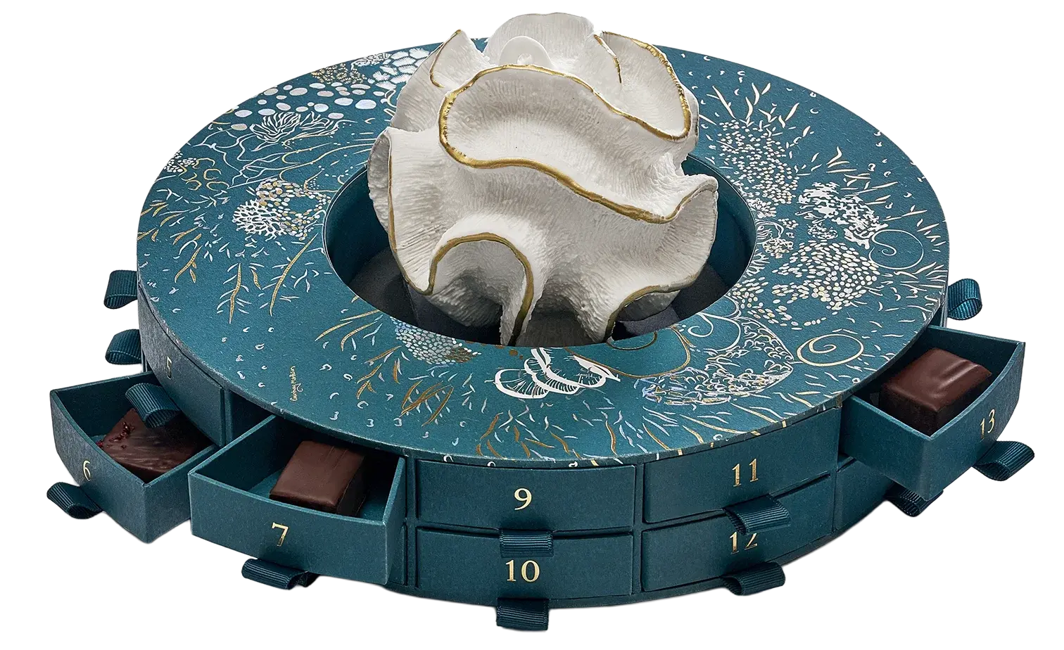 Le calendrier de l’Avent séduit par son allure décalée et éphémère. Avec son arrondi parfait et ses couleurs éclatantes, elle dévoile, jour après jour, 24 créations Infiniment Chocolat, pour le plus grand plaisir des gourmands.