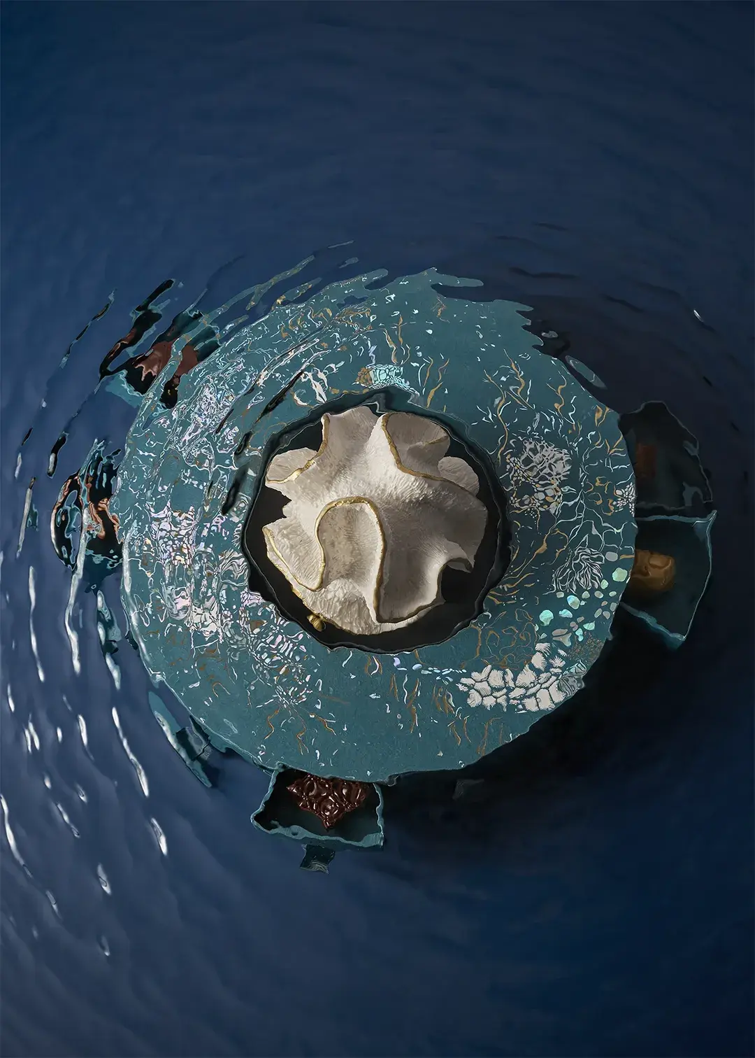 “Je me suis immédiatement investie dans ce projet. Nos métiers partagent de nombreux points communs, comme le travail manuel et la part de rêve que nous souhaitons offrir. Je façonne à la main chacune de mes sculptures pour célébrer la richesse et la fragilité des récifs coralliens. Collaborer avec Pierre Hermé pour partager mon travail et le transposer, au fil de nos échanges, dans une collection de pâtisseries a été une expérience particulièrement enthousiasmante.”